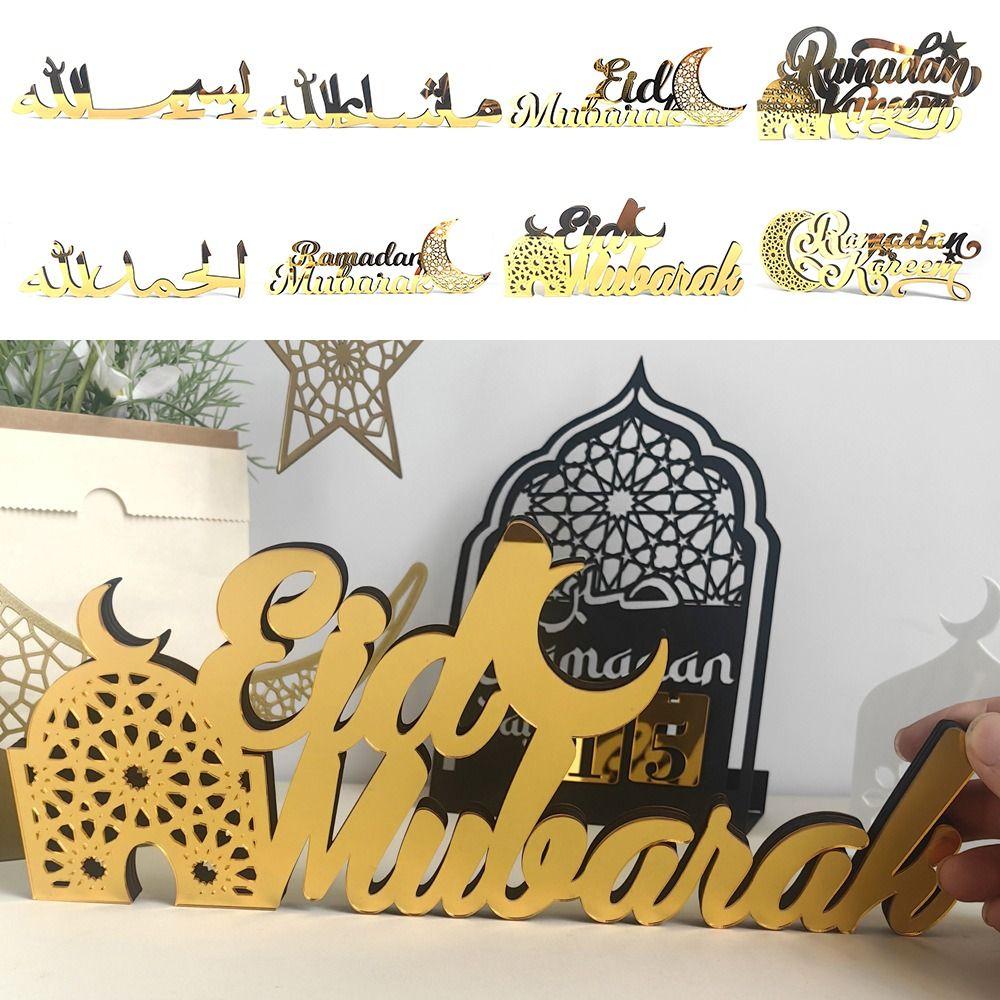 High Quality Gold Ramadan Kareem Ornaments Mirror Face Moon Eid Mubarak Figurine Acrylic DIY Desktop Decoration Gifts
