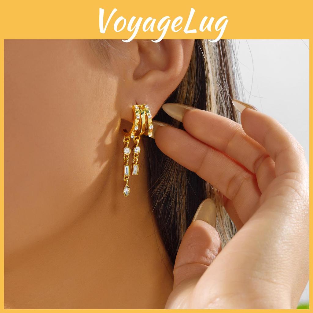 Fashion Alloy Asymmetrical Drop Earrings With Chain Tassels For Women