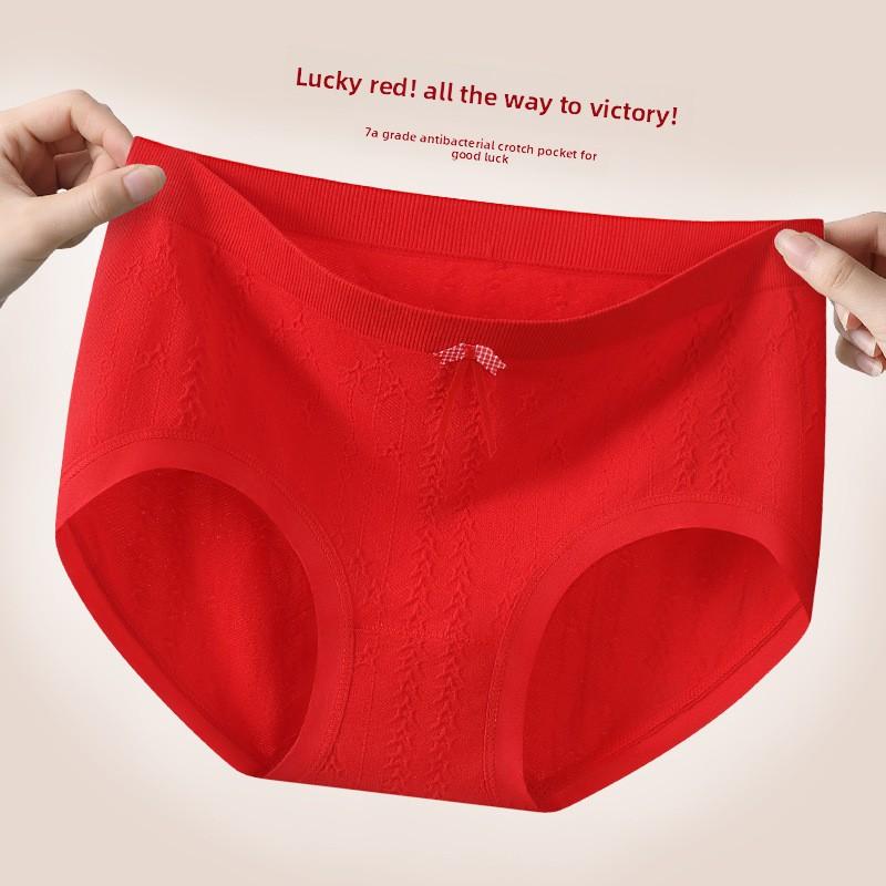 Big Size Female Spring and Autumn Benming Year Marriage Red High Waist Triangle Briefs