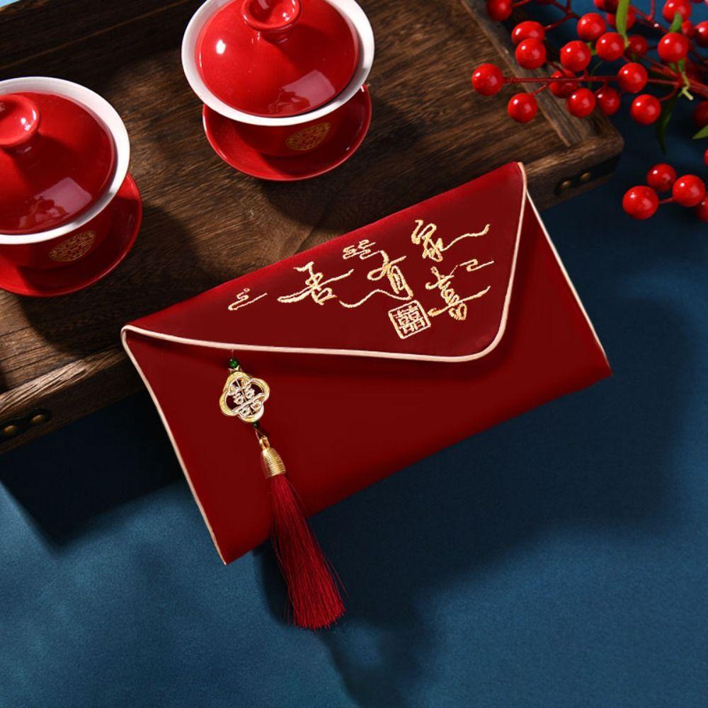 Mehrere Muster Hochzeit Roter Umschlag Quastendesign Stickerei Rotes Geld Päckchen Canvas Tasche Beste Wünsche HongBao Frühlingsfest
