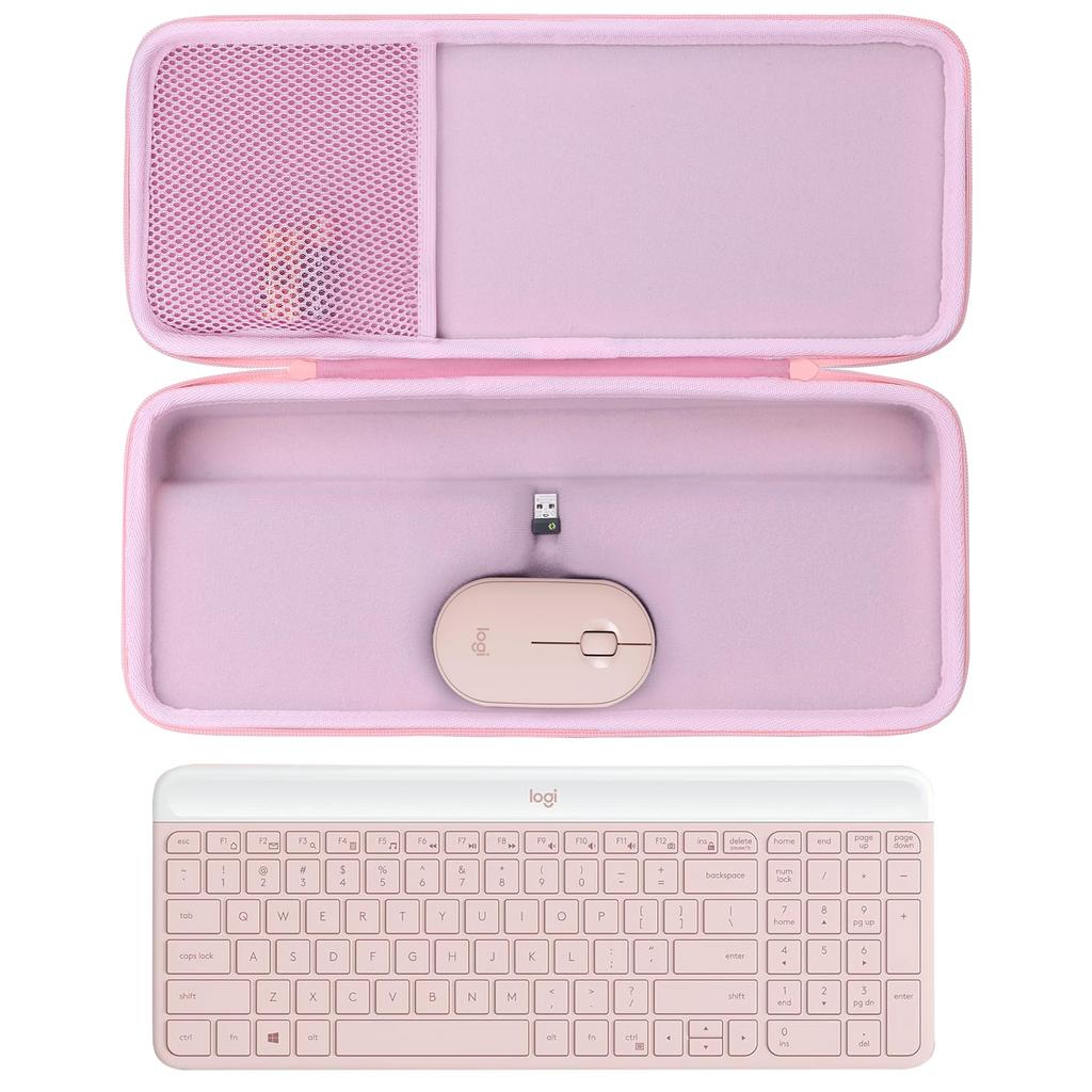 Lebakort Storage Case Compatible with Logitech MK470 Slim Wireless Keyboard and Pebble M350 Wireless Mouse (Pink Case)