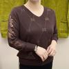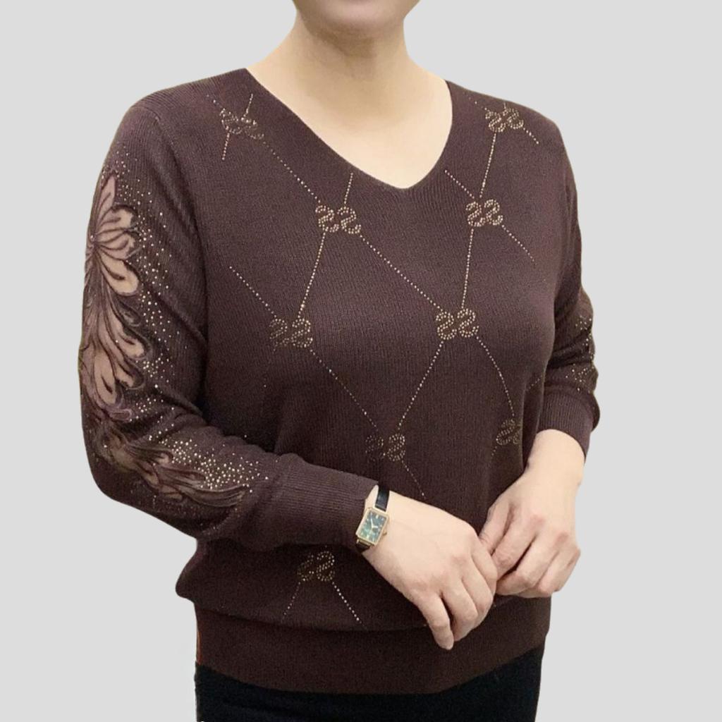 Frühling Herbst Damen V-Ausschnitt Pullover Lockere Passform Strasssteine Lochstrick Überzieh-Pullover