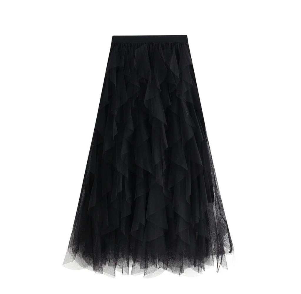 LIANFOR Unregelmäßiger Uni Langer Tüllrock mit Hoher Taille und Elastisch Stilvoll für Jeden Tag und Herbst Kostenlos Damen Rüschen, Taille, Tragen, Frühling, Sommer,
