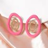 Korean version of dopamine color hollow geometric creative design sense round alloy stud earrings daily commuting