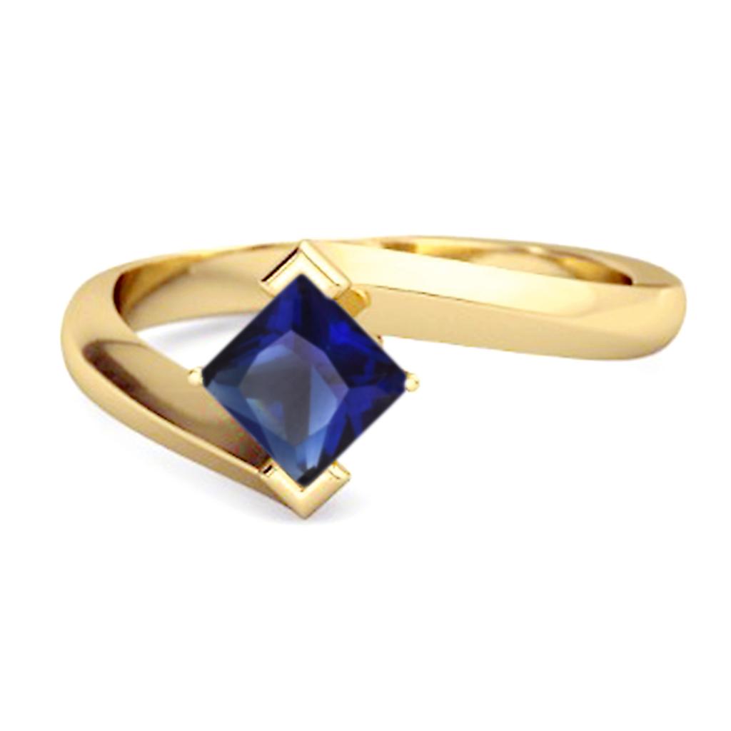 Blue Sapphire Bypass Solitaire Ring - 925 Sterling Silver Gold Vermeil