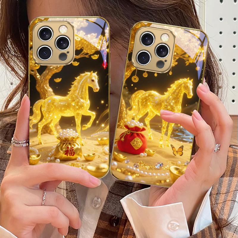 The Golden Fighting Horse For IPhone 16 17Pro Max 15 P ro 14 13 Plus 12 Mini 11Pro Max XR 16E 17 Air Golden glass phone case