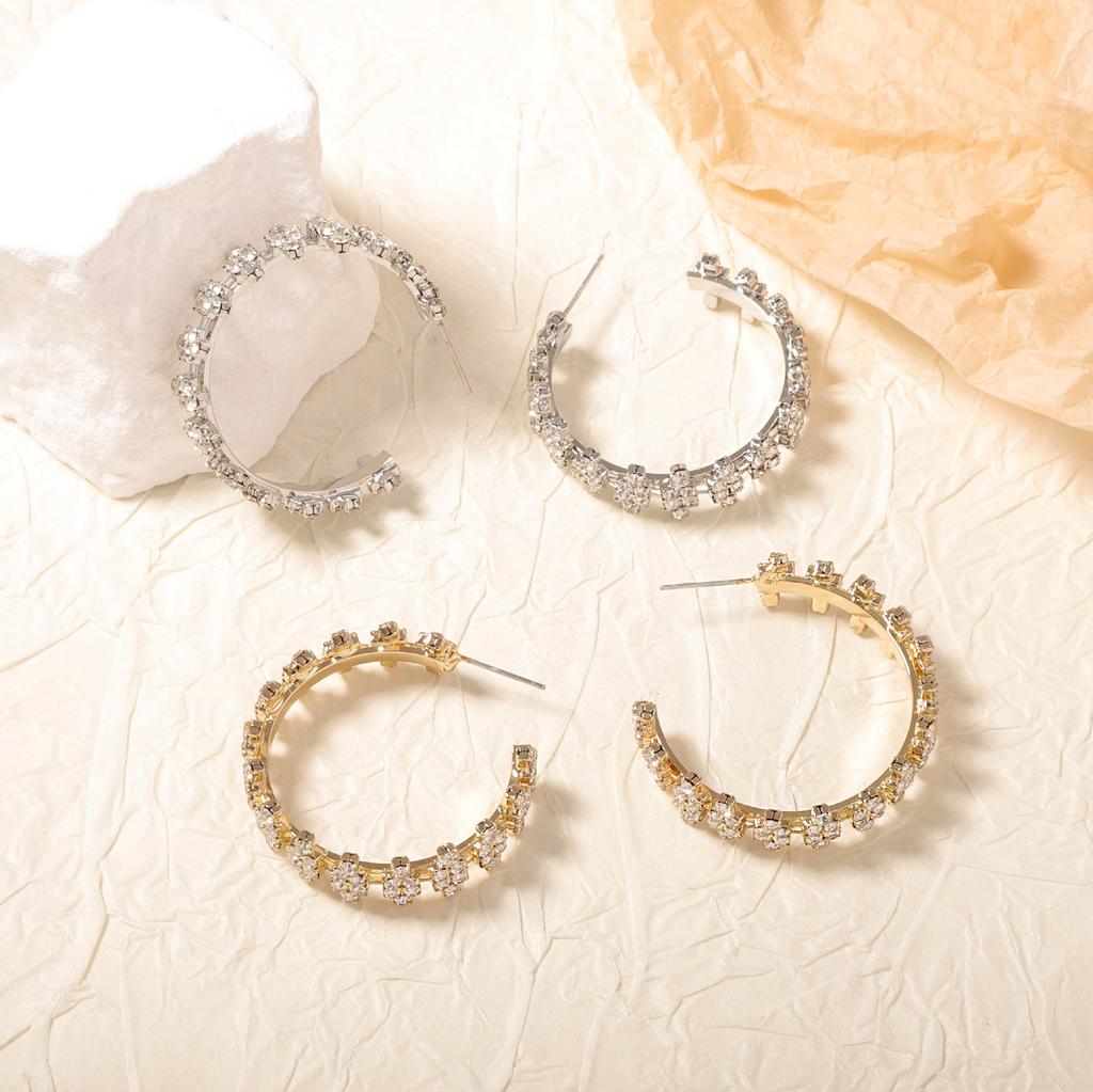 European and American fashion exquisite creative full diamond geometric C letter stud earrings versatile daily temperament wear women