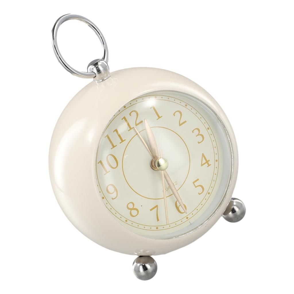 Silent Vintage Alarm Clock Round Simple Design Small Analog Decor For Table Night Light Portable Retro Bedroom