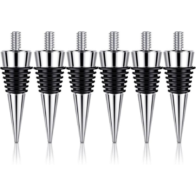 6 Pieces Metal Bottle Stopper 16 x 3/8 Blank Stainless Steel Wine Bottle Stopper Kit Reusable Wine Saver Corks Chrome Bottle Stopper Set Hardware for