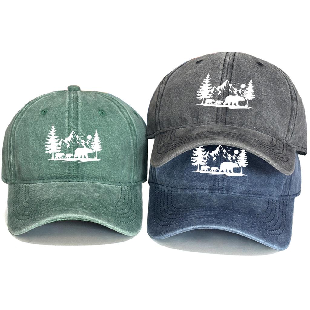 Bear Walking In The Forest Print Snapback Baseball Hat Gorra Hombre Retro Distressed Adjustable Baseball Caps One Size Fits All