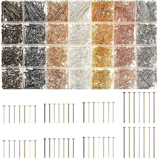 Junkin 2800 Pieces Headpins for Making Jewelry Flat Head Pins Set 0.63 Inch 0.71 Inch 0.79 Inch 1.18 Inch Jewelry Making Head Pins Mix Beading Pins