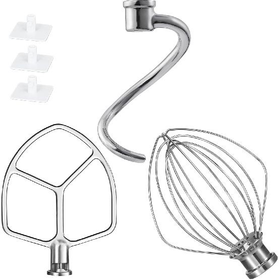 Kitchen Mixers Accessories for KitchenAid Mixer, 6 QT Dough Hook K256WW Wire Whip and Flat Blade Paddle Stainless Steel Attachments for Kitchen aid