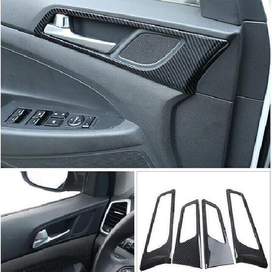 For Hyundai Tucson 2016-2021 Carbon Fiber Inner Door Handle Lock Frame Trim 4PCS