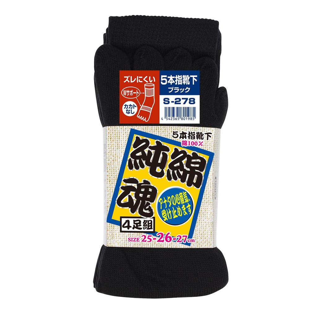 Kansai Fashion Union Pure Cotton Soul Set of Five-Toe Slippers, Black, 4, S-278
