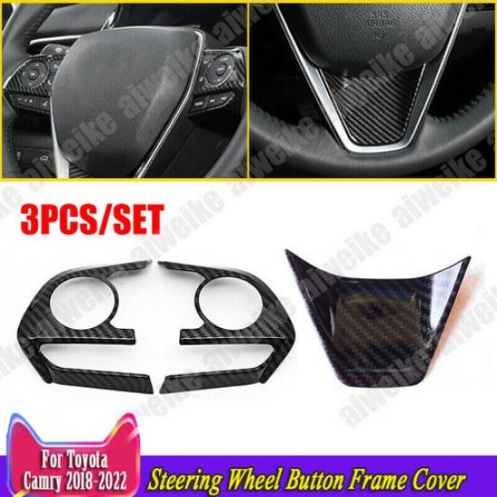 3x ABS Carbon Fiber Steering Wheel Button Frame Cover For Toyota Camry 2018-2023