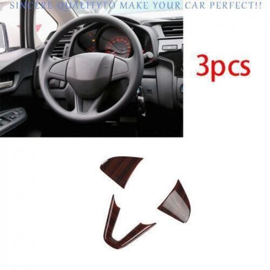 For Honda Fit Jazz GK5 14-2020 Red Wood Grain Steering Wheel Control Cover Trim