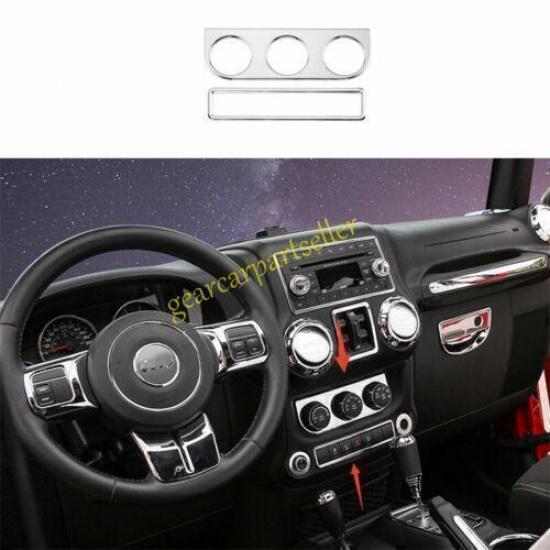 For Jeep Wrangler JK 11-2017 Bright Chrome Console AC Switch Control Panel 2PC