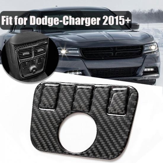 Fits Dodge Charger 2015~2022 Carbon Fiber Rear Console Seat USB Panel Cover Trim