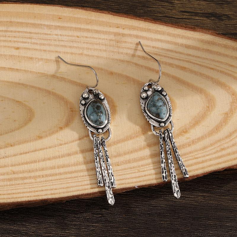 Retro Bohemian New Imitation Turquoise Inspired Elegant Tassel Earrings Women's Festival Party Jewelry Accessories Gifts