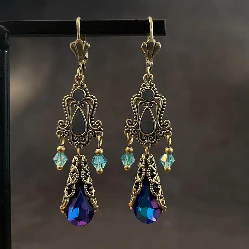 Vintage Böhmisch Ethnisch Lange Farbige Acryl Kristall Wassertropfen Ohrringe Für Damen Temperament Geometrischer Anhänger Schmuck