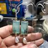 Vintage Quadratische Hängeohrringe mit grünem Opalstein für Damen, ethnische silberfarbene runde Stein-Perlen-Ohrringe, Partyschmuck