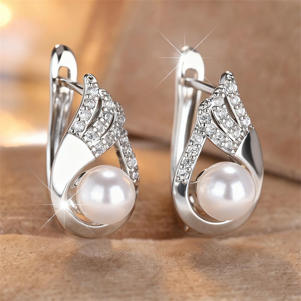 White Zircon Simulated Pearl Cute Angel Wings Hoop Earrings For Women Vintage Gold Silver Color Ear Buckle Wedding Jewelry Gifts