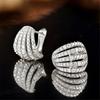 Cute Female White Zircon Stone Round Hoop Earrings Silver Color Wedding Jewelry For Women