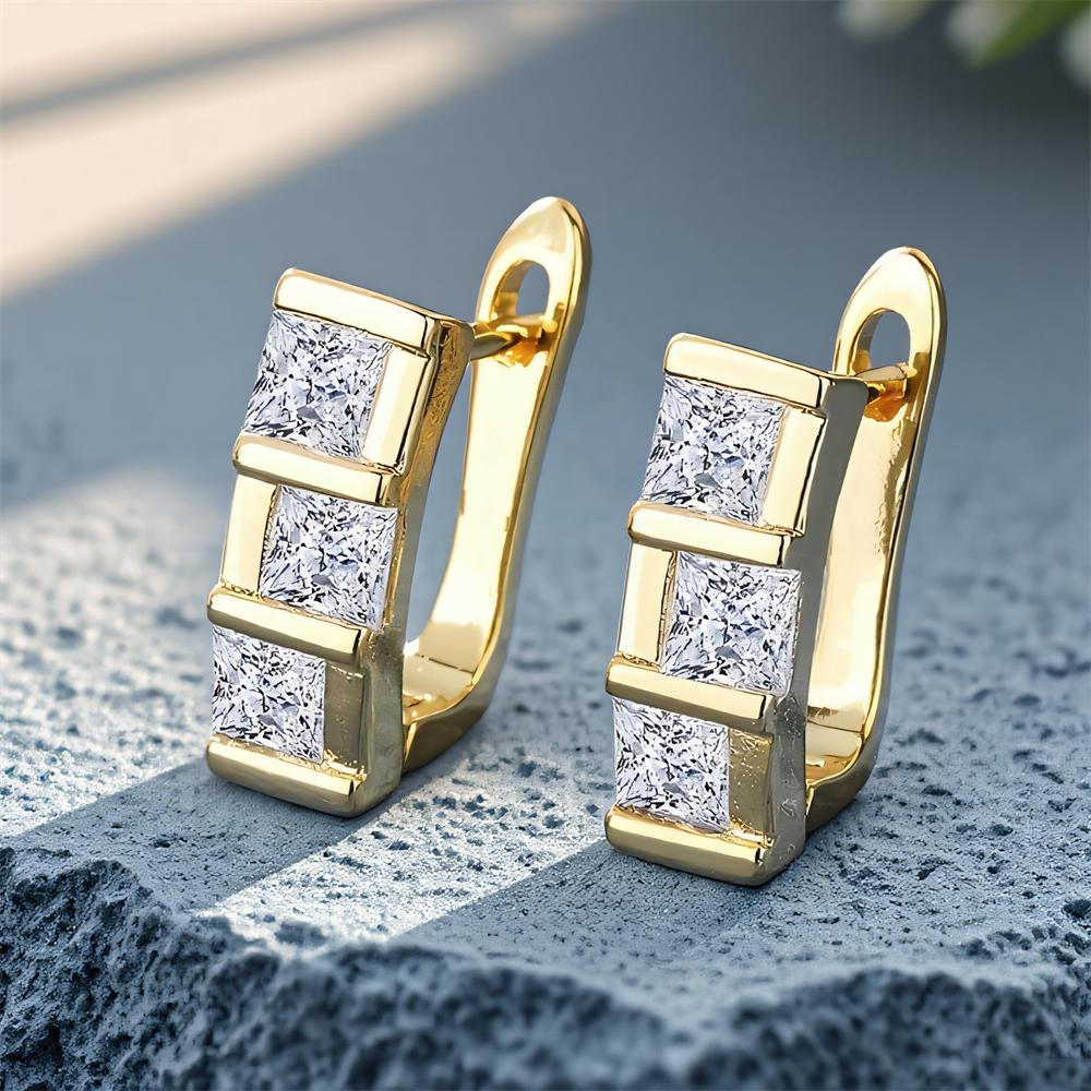 Weiße Zirkonia Geometrische Quadratische Steine Creolen für Damen Vintage Goldfarbe Ohrstecker Hochzeitsparty Schmuck Vielseitige Geschenke