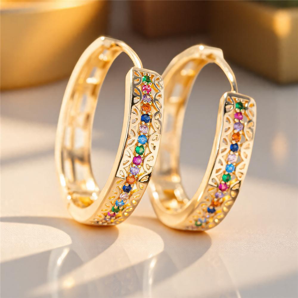Charm Small Rainbow Round Stone Hoop Earrings For Women Vintage Female Gold Color Wedding Jewelry