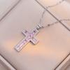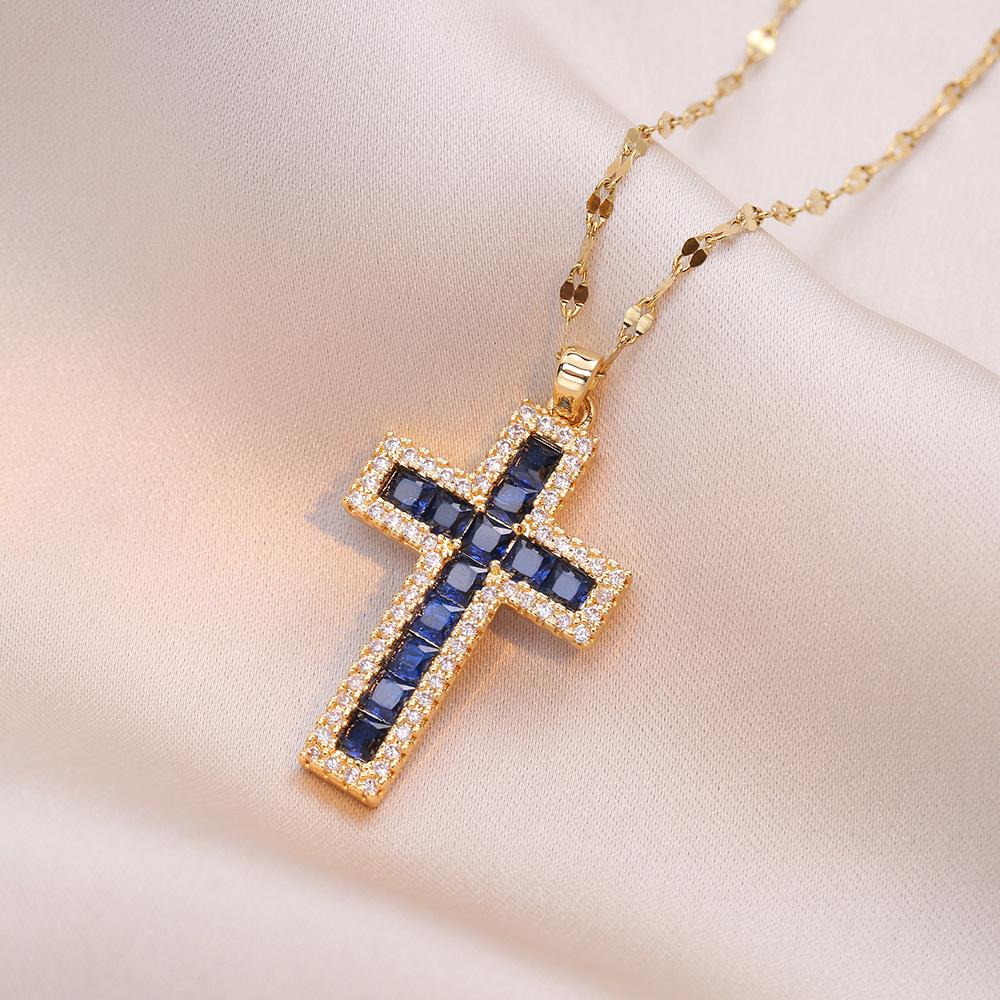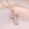 Luxus Damen Blau Rosa Zirkonstein Kreuz Anhänger Halskette Vintage Goldfarbe Hochzeits Schmuck Für Frauen