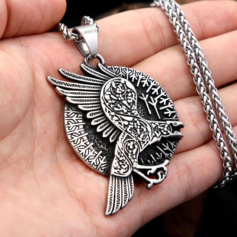 Punk Vintage Nordic Odin Crow Necklaces For Men Women Stainless Steel Viking Rune Pendant Amulet Jewelry Gifts Dropshipping