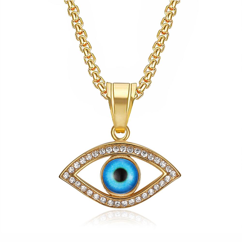 Turkish Blue Evil Eye Pendant Necklaces Female Gold Color Stainless Steel CZ Amulet Charm Necklace For Women Men Jewelry Gift
