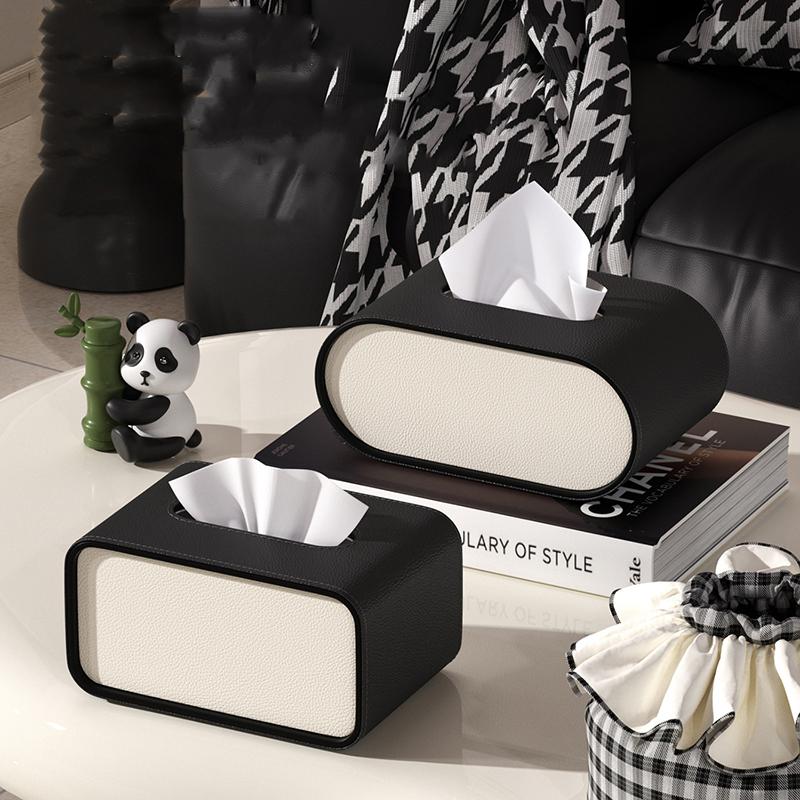 Tissue Box Luxury High Quality Light Luxury High-end Living Room Paper Box Creative Oval Leather Bedroom Desktop Napkin Storage