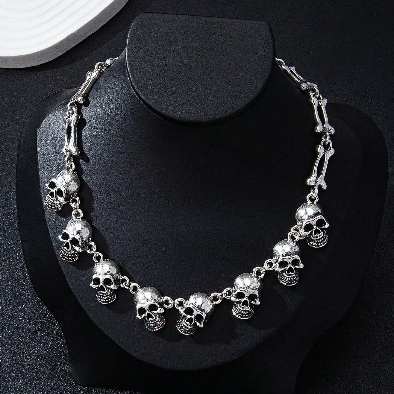 Gothic Style Exaggerated Multiple Skull Connected Choker Necklace Unique Skull Halloween Gift Accessory Charm Quirky