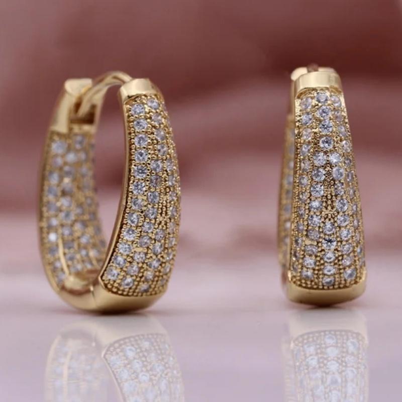 Luxurious Geometric Copper Jewelry Inlaid with Synthetic Zircon Hoop Earrings Versatile Daily Versatile or Elegant Earrings