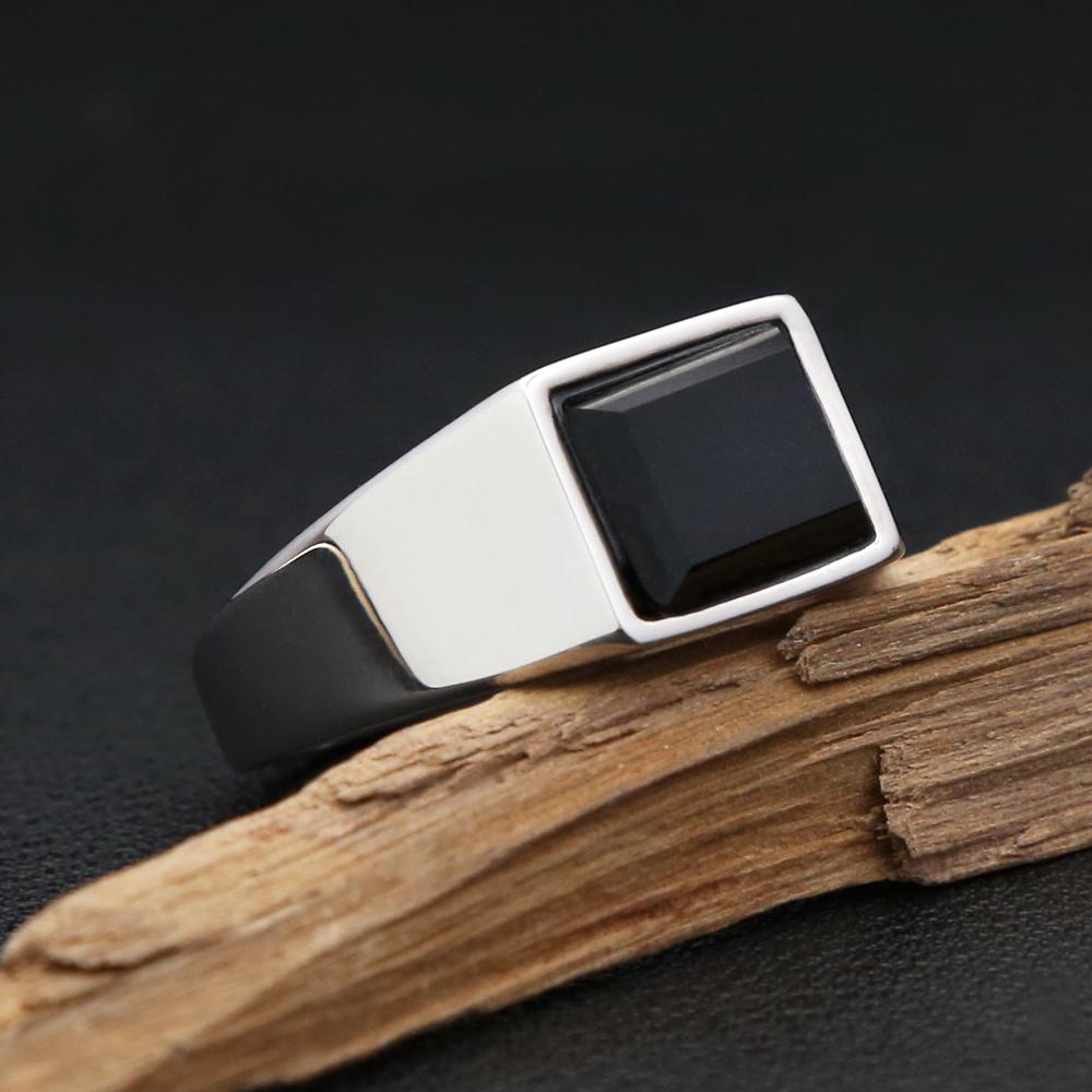 Gotische Punk Edelstahl Quadratische Stempel Fingerringe Für Männer Frauen Klassischer Schwarzer Stein Ring Partner Party Schmuck