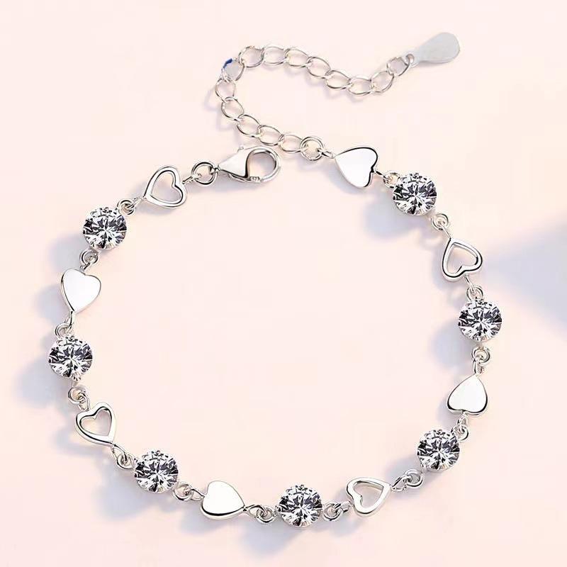 Luxury Sterling Silver Heart Zircon Bracelet for Women Korean Sweet Cool Hollow Heart Bracelets Party Jewelry Gifts