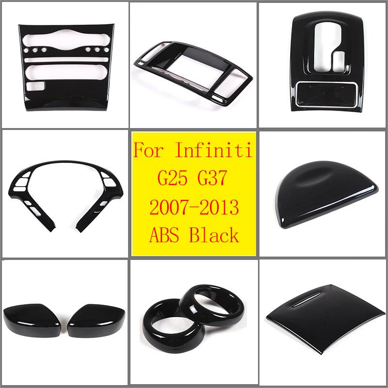 ABS Black For Infiniti G25 G37 2007-2013 Car Center Control Gear Shift Panel Steering Wheel Trim Sticker Car Accessories