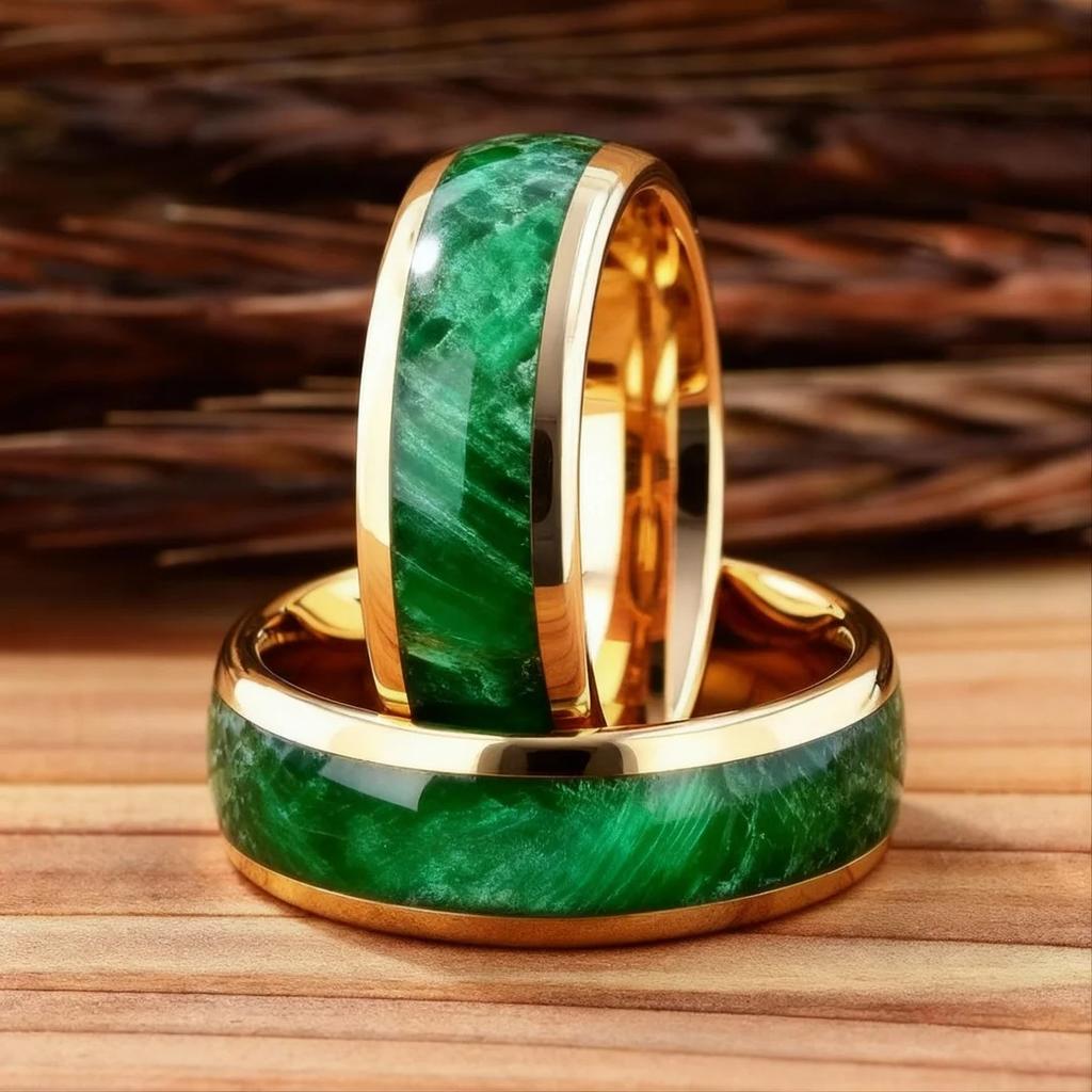 8mm Herren Edelstahlringe, Goldfarben Gebürstet Grün Koa Holz Inlay Ringe für Männer, Hochzeits Schmuck Weihnachten Geschenk
