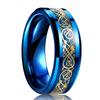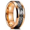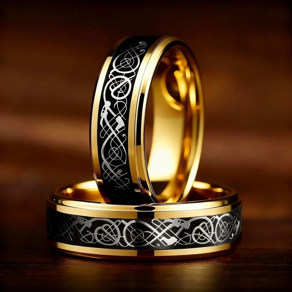 Celtic Black Carbon Fiber Rings, Gold Color Men Stainless Steel Dragon Rings, Men Wedding Band Jewelry