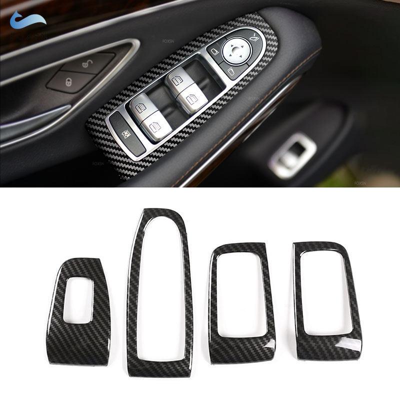 For Mercedes Benz S Class 2014- LHD Carbon Fiber Texture Car Interior Door Window Lift Switch Button Frame Cover Trim