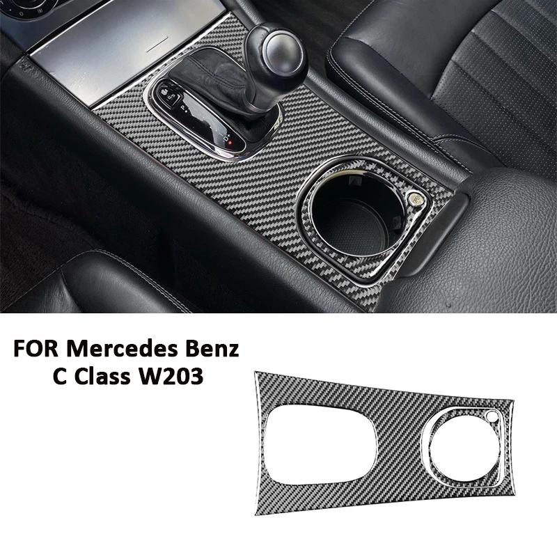 Carbon Fiber Car Central Console Gear Shifter Water Cup Holder Panel Decoration Sticker For Mercedes Benz C Class W203 2005-2007