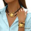 Vintage Oval Metall Halskette Armband Für Frauen Gold Silber Farbe 2Stk/Set Doppellagige Kette Schmucksets Geschenk