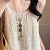 New Chinese style antique natural stone ceramic pendant necklace national style national style long lanyard sweater chain neck accessories