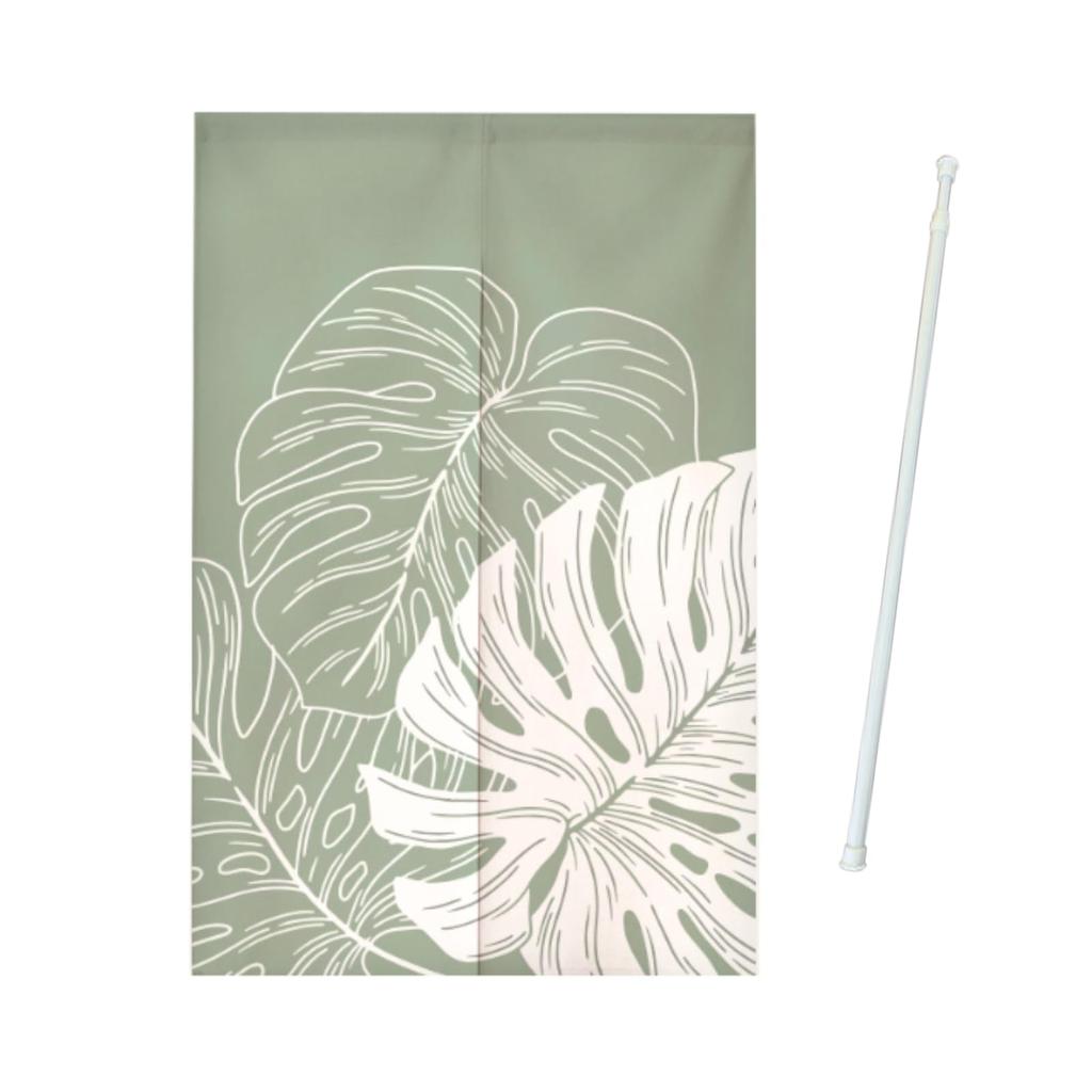 Dicker Noren-Vorhang mit Spannung Botanisches Grünes Blatt Privatsphäre Raum Einfacher Türdurchgang Natürlich Lang, Stange, 150x80cm, Muster, Sichtschutz, Raumteiler, Installation,