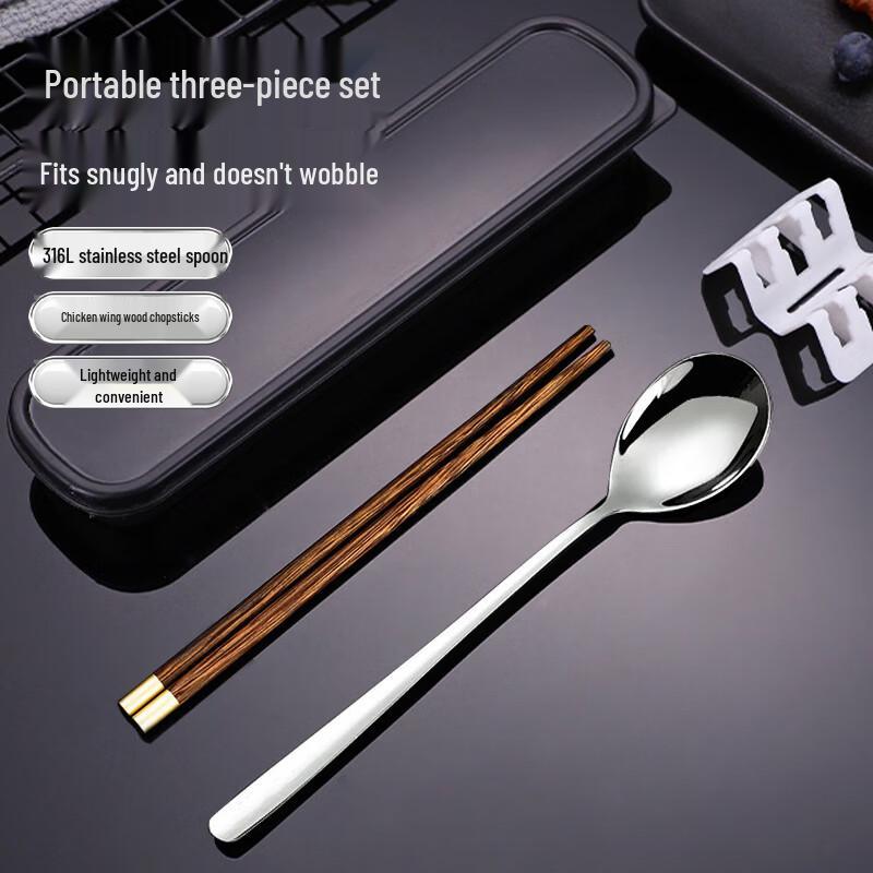 Portable 316L Stainless Steel Spoon & Wenge Wood Chopsticks Set