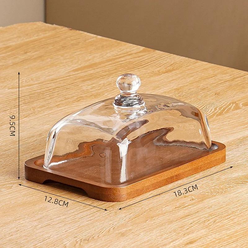 Holz- und Glas-Butterteller können Kuchen, Macarons, Früchte und mehr aufnehmen. Geeignet zur Präsentation von Desserts beim Nachmittagstee in Hotels.