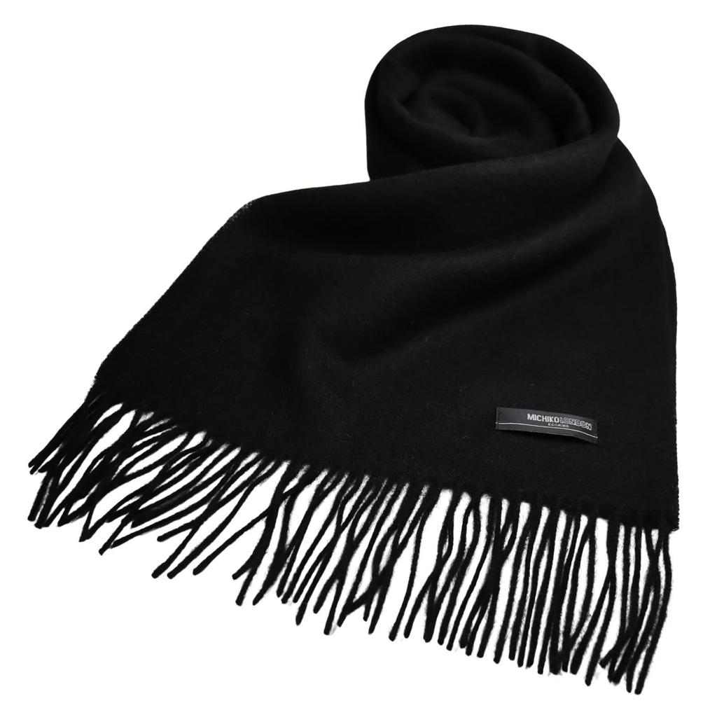 Michiko London Inner Mongolia Wool 168cm x Solid Black Scarf, Gift, Size Approx. 31cm, Tassel Approx. 8cm, MKM-001-A,