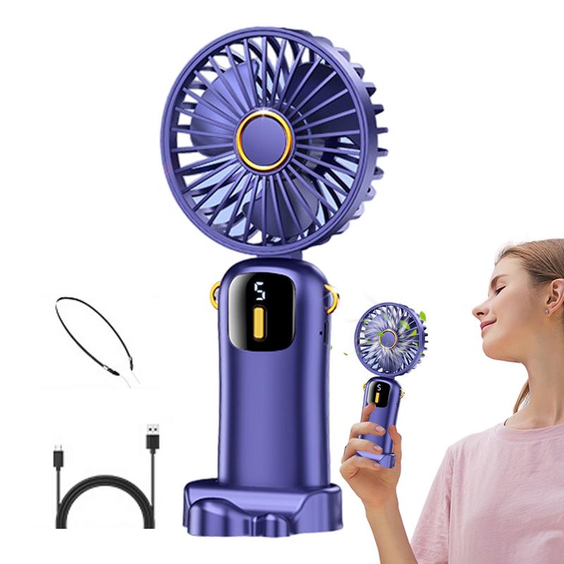 Handheld Mini Fan Foldable Portable Neck Hanging Fans USB Rechargeable Fan With Phone Stand Display Screen