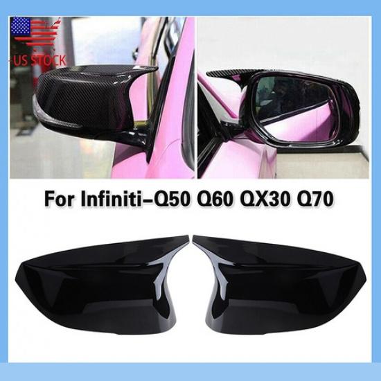 for Infiniti Q50 Q60 Glossy Black Rearview Mirror Cover Caps M3 Style 2014~2021